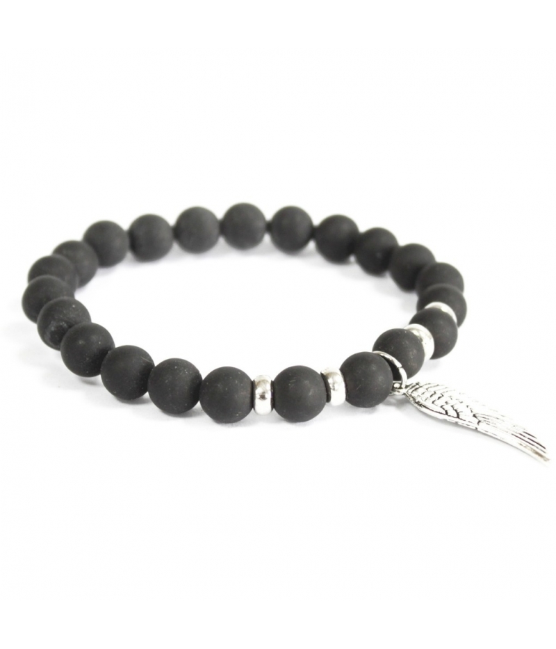 Schwarzer Achat mit Engelflügel Armband