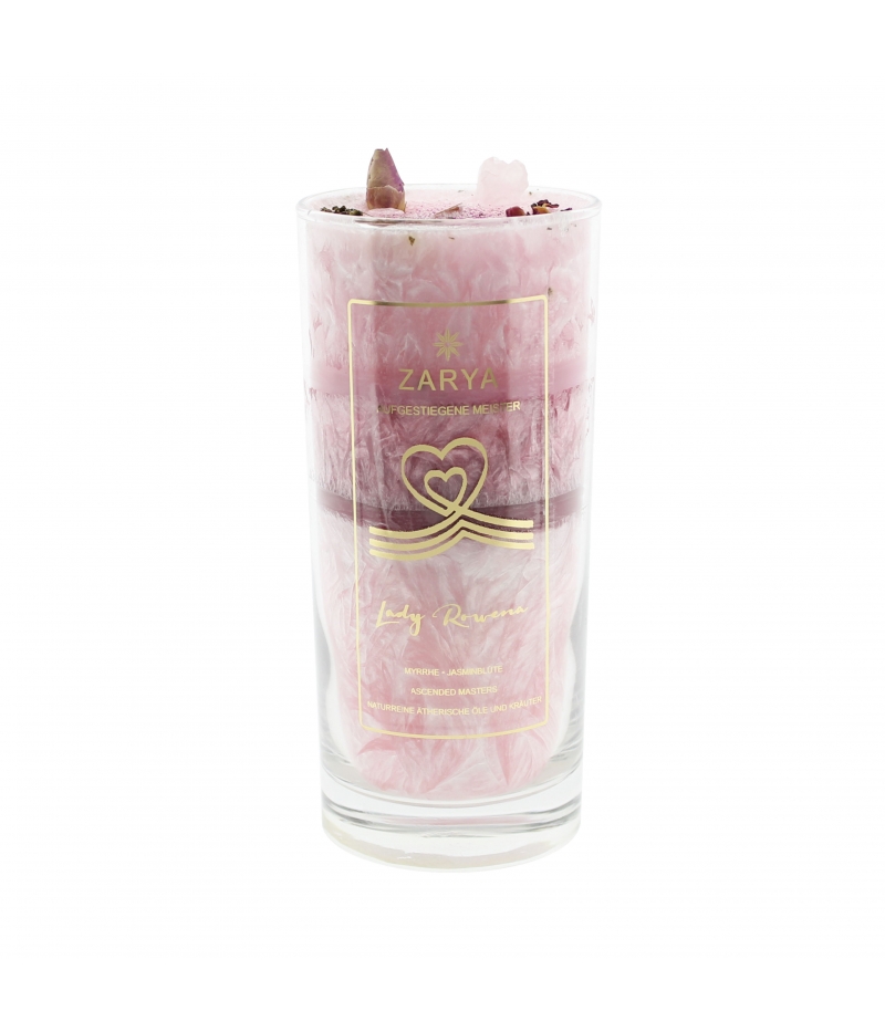 Diese hochwertige Ritualkerze des aufgestiegenen Meisters ist aus 100% pflanzlichen Stearin (kbA) mit naturreinen ätherischen Ölen, einem natürlichen Holzdocht, echten Edelsteinen und Bio-Pflanzenmischungen, in liebevoller Handarbeit in Deutschland gefertigt. Sie ist behutsam in Seidenpapier eingewickelt und in einer edlen schwarzen Verpackung erhältlich.