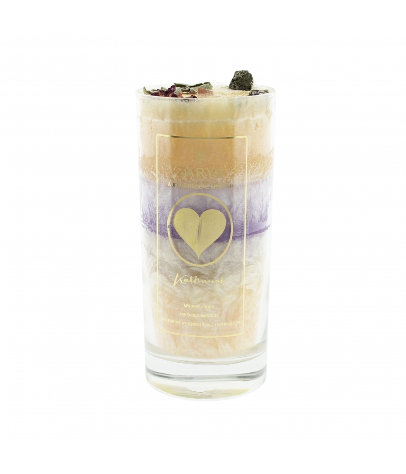 Diese hochwertige Ritualkerze des aufgestiegenen Meisters ist aus 100% pflanzlichen Stearin (kbA) mit naturreinen ätherischen Ölen, einem natürlichen Holzdocht, echten Edelsteinen und Bio-Pflanzenmischungen, in liebevoller Handarbeit in Deutschland gefertigt. Sie ist behutsam in Seidenpapier eingewickelt und in einer edlen schwarzen Verpackung erhältlich.