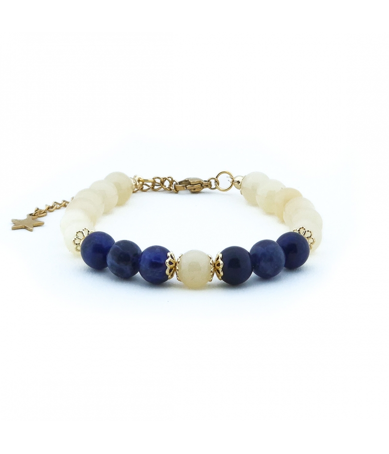 Dieses hochwertige Edelstein-Armband ist dem Geist – Citta – gewidmet und bringt deine innere Klarheit sanft zum Vorschein. Der gelbe Calcit fördert Selbstbewusstsein und Leichtigkeit, während der blaue Sodalith deinen Fokus schärft, mentale Ruhe verleiht und emotionale Ausgeglichenheit unterstützt.