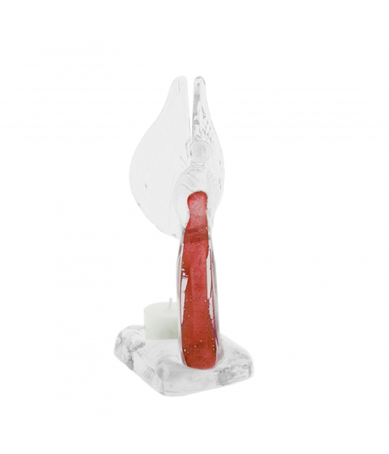 Eine mundgeblasene und handgefertigte Kristallglas Figur des Erzengel Uriel. Die rote Farbe symbolisiert den Erzengel der inneren Ruhe sowie das Wurzelchakra (1. Chakra). Jeder Engel-Kerzenhalter ist ein Unikat, und kann sich geringfügig voneinander unterscheiden, da diese von Hand gefertigt sind.