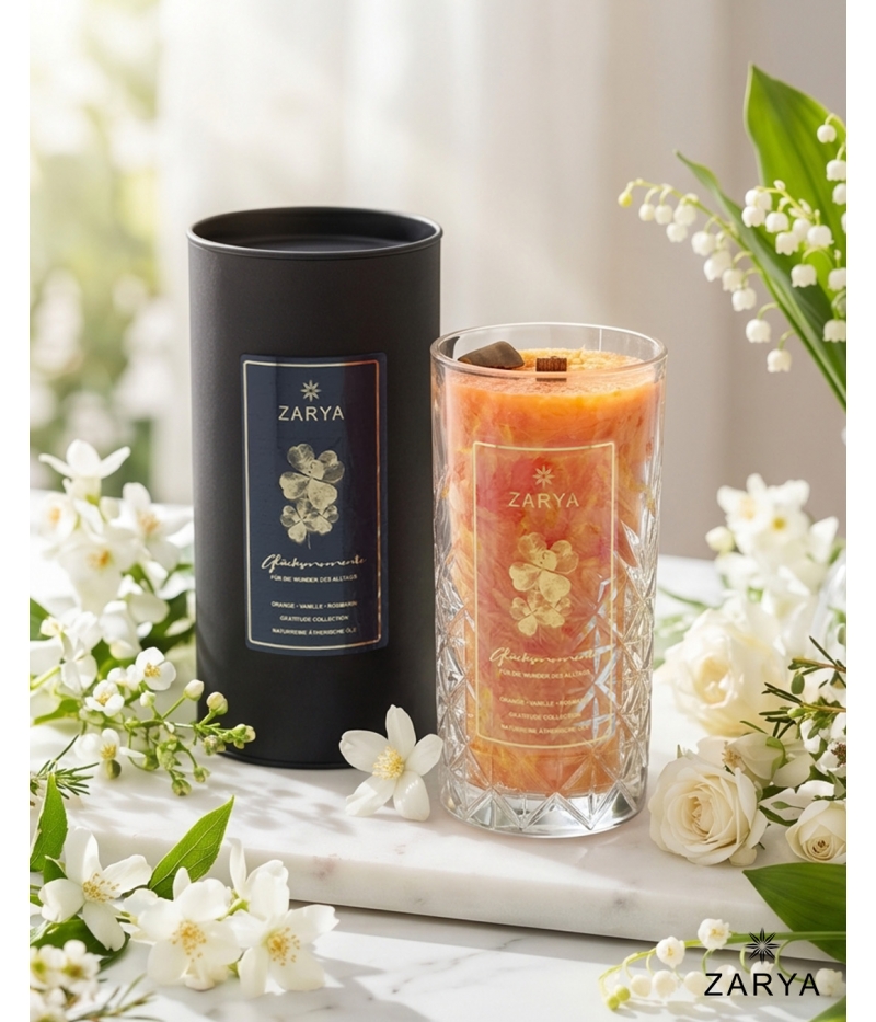 Praktiziere Deine Dankbarkeit mit der Dankbarkeitskerze „Glücksmomente“, um die leisen, unscheinbaren, aber kostbaren Augenblicke des Alltags bewusster wahrzunehmen. Sie erinnert Dich daran, dass wahres Glück oft in den kleinen Dingen liegt – in einem ruhigen Morgen, einer warmen Tasse Kaffee oder Tee, einem tiefen Atemzug, einem guten Schlaf oder ein paar Minuten nur für Dich.