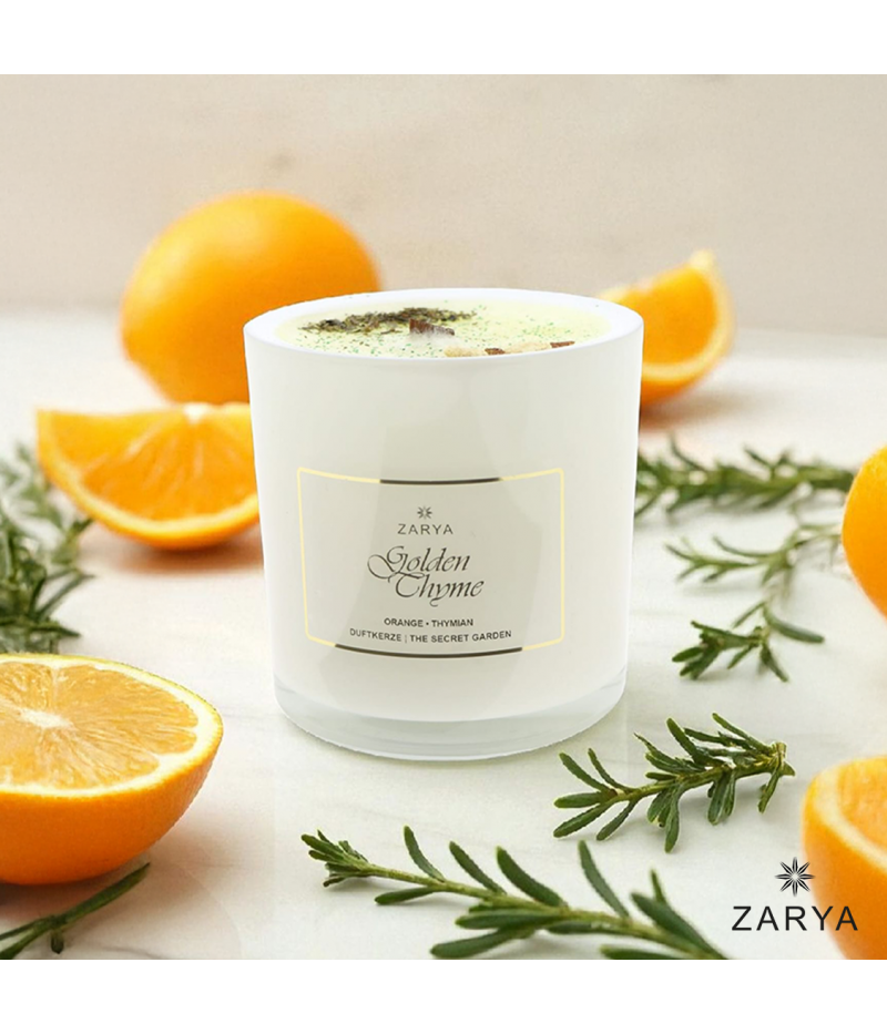 Erkunde einen verborgenen Garten der Erholung, in dem sich die fruchtigen Duftnoten der sonnenverwöhnten Orangen mit dem würzigen Aroma des Thymians harmonisch vereinen. Lass dich von der wohlduftenden Brise, die durch den Garten weht, berühren.