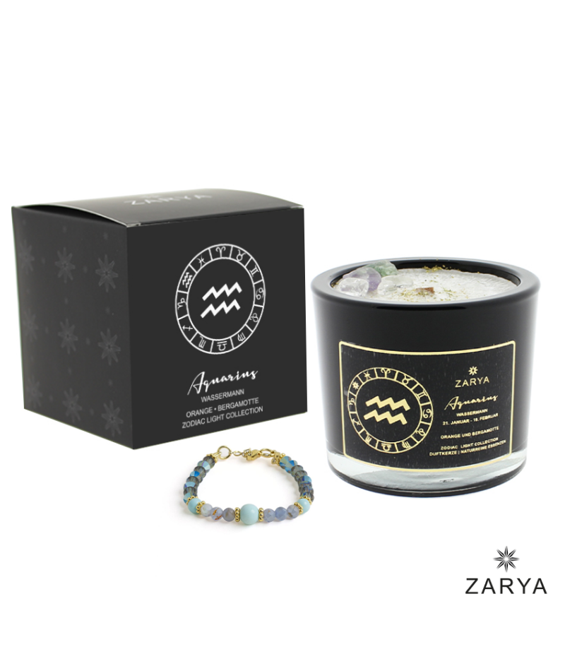 Dieses inspirierende Set vereint die Wassermann-Duftkerze mit dem passenden Edelsteinarmband – eine luftige Komposition aus Duft, Energie und Symbolik, die deine Originalität und geistige Weite entfaltet.