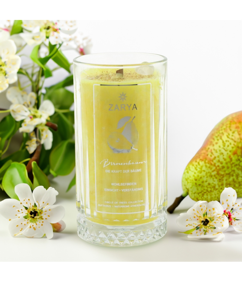 Seine süßen grün-gelblichen Früchte stehen für Wachstum wie auch Erkenntnis. Der fruchtig-süße Duft der Birne erfüllt den Körper mit warmer und sonniger Energie, während der erfrischende Duft uns und den Geist auf das Wesentliche fokussieren lässt.