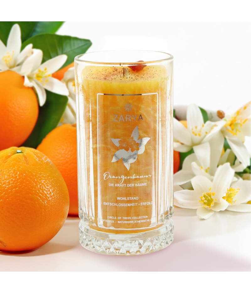 Der Orangenbaum hat eine reinigende, erfrischende und energetisierende Wirkung. Die holzige Duftnote der Zeder beruhigt den Körper während der frisch-belebende Duft der süßen Orange den Geist sowie die Seele mit positiver Energie und Glückseligkeit erfüllt.