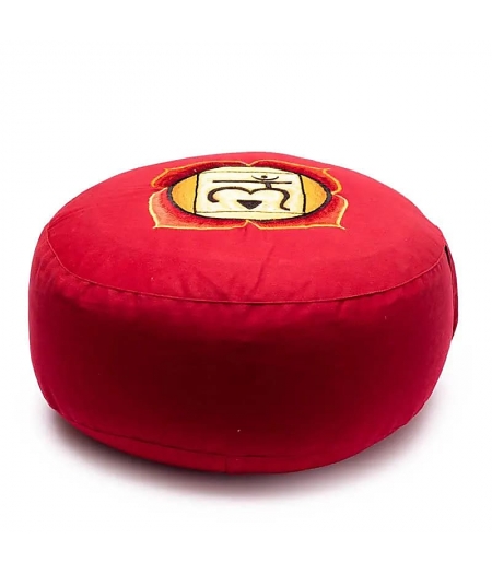 Rotes Meditationskissen - 1. Chakra - Muladhara - bestickt.