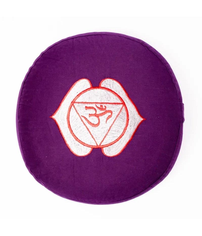 Violettes Meditationskissen - 6. Chakra - Ajna - bestickt.