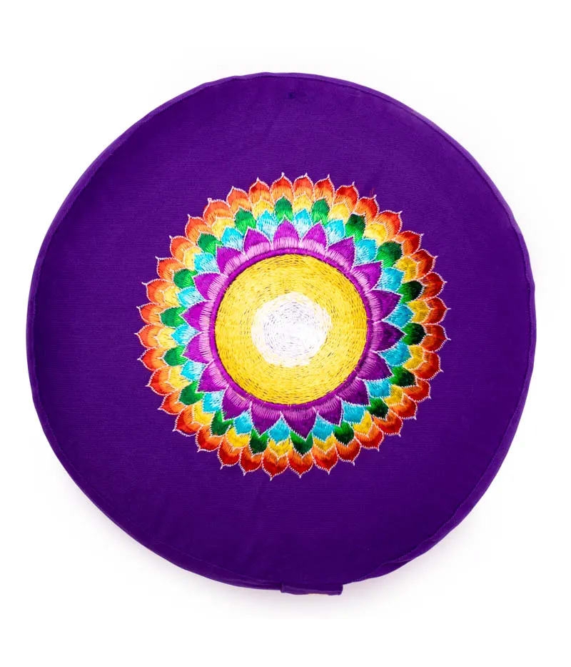 Dunkel Violettes Meditationskissen - 6. Chakra - Sahasrára - bestickt.