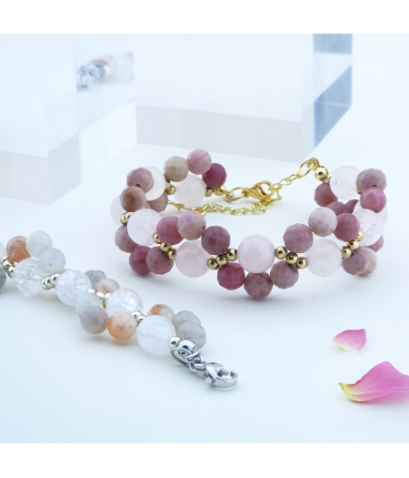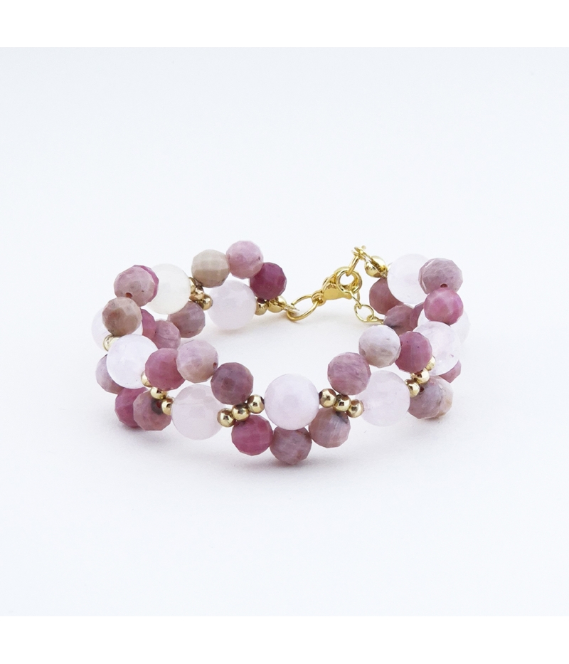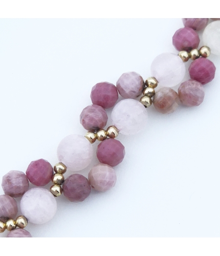 Edelsteinperlen: Rhodonit (8mm), Rosenquarz (6) facettiert