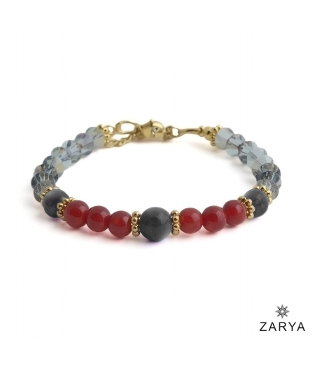 Dieses handgefertigte Edelstein-Armband, inspiriert von der kraftvollen Energie des Sternzeichens Widder, vereint die lebensbejahende Wärme des Karneols mit der stabilisierenden Kraft des Hämatits. Funken sprühen dank der Crystal Volcano Preciosa Kristalle, während vergoldete Zwischenelemente und Miyuki Rocailles Perlen das Design mit majestätischer Eleganz vollenden.